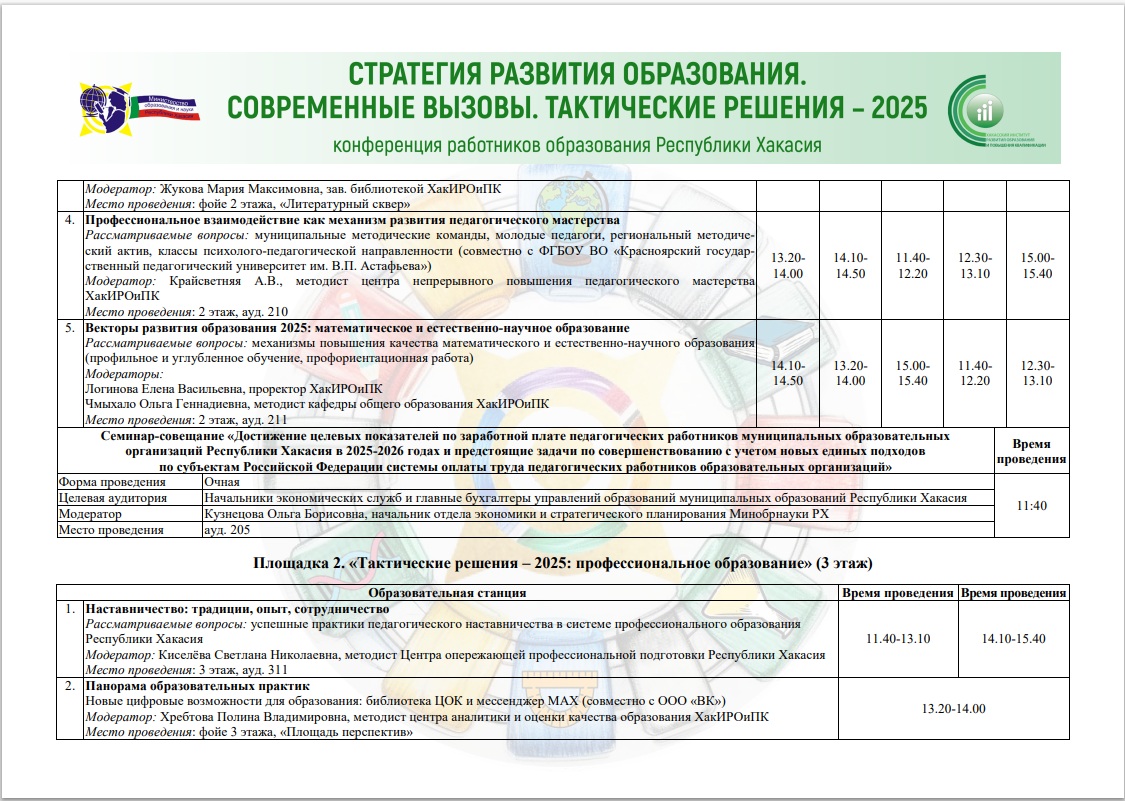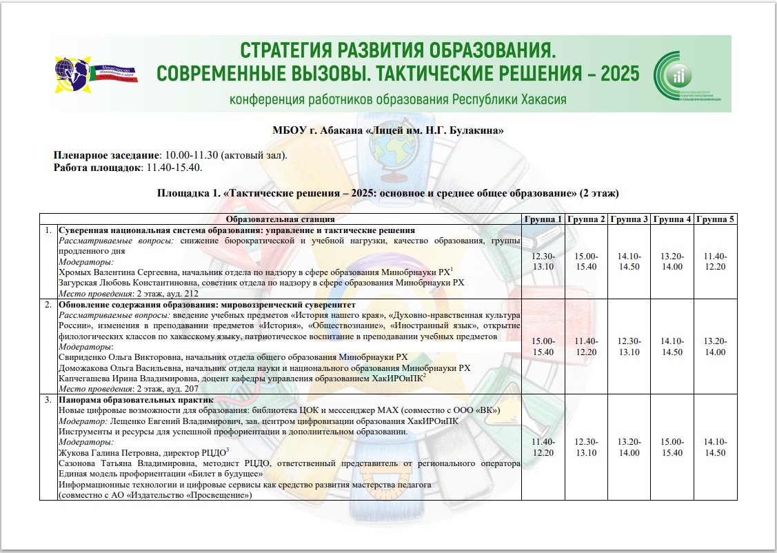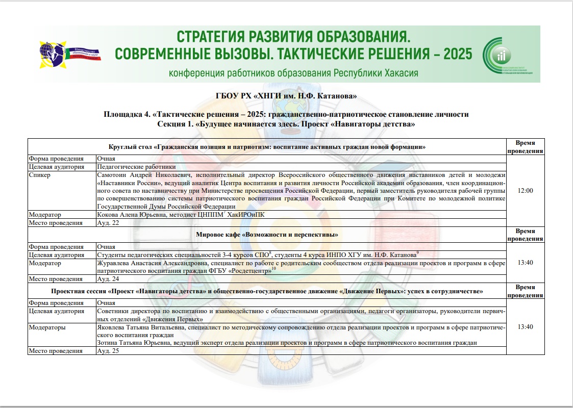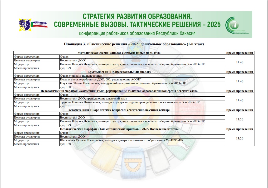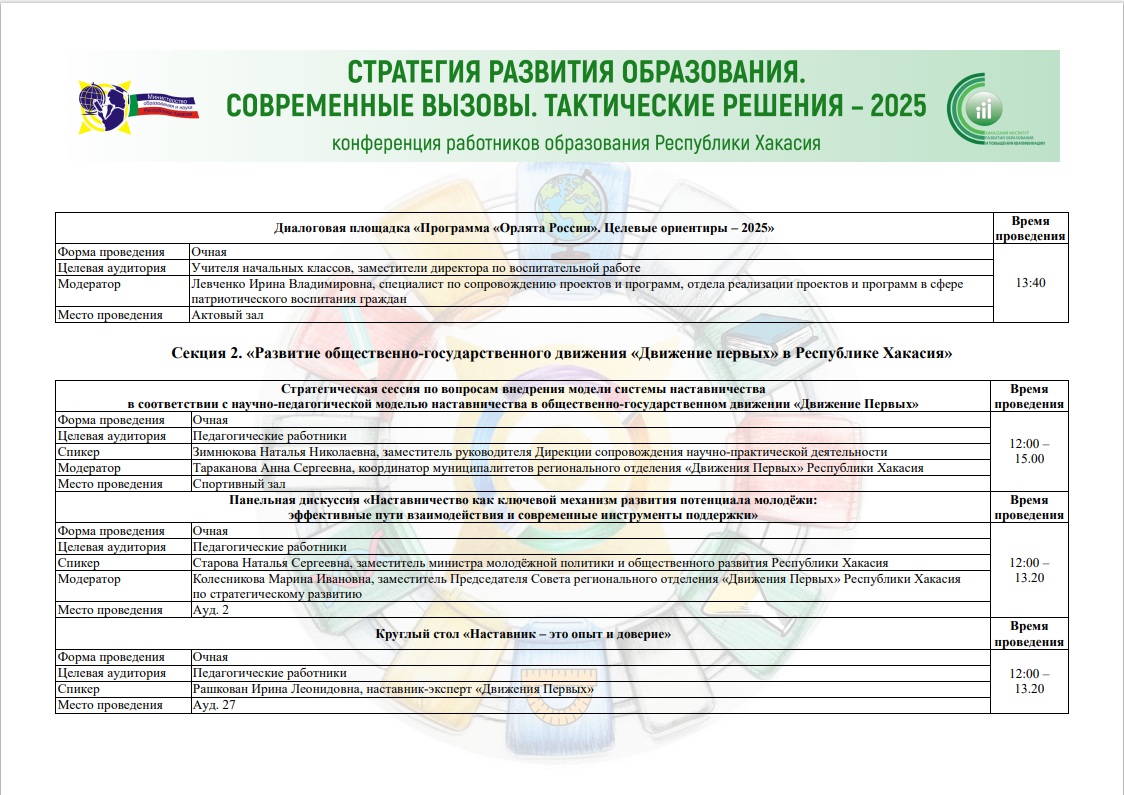 Как рассказала заместитель министра образования и науки республики Елена Конева, в этом году мероприятие пройдет в Лицее имени Н.Г. Булакина, где расположатся 3 площадки, а также в Республиканской национальной гимназии, где обсудят вопросы гражданственно-патриотического становления личности.