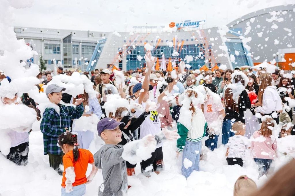 Праздник завершился незабываемой пенной вечеринкой. Под зажигательные ритмы музыки взрослые и дети с удовольствием веселились в облаках пены. И пасмурная погода не только не испортила настроения горожанам, но и, напротив, стала эффектным фоном для обилия красок на площадке СГК.
