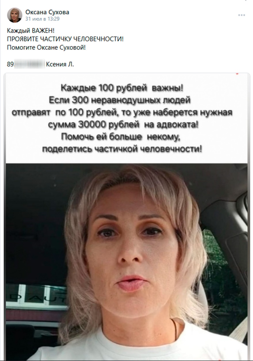 Но до того, как ее взяли под стражу, Сухова приходила в разные редакции, где пыталась добиться публикации своей версии развития событий.