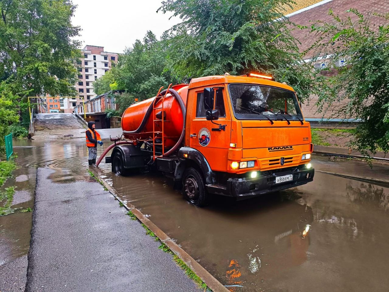 В целом за ночную смену выполнено около 60 рейсов, а за сутки с 6 утра 2 сентября до 6 утра 3 сентября – почти 140 рейсов. С учётом откачки насосным оборудованием и мотопомпами, работы привлечённой техники с улиц города откачано порядка 2400 кубометров воды. Работа продолжается.