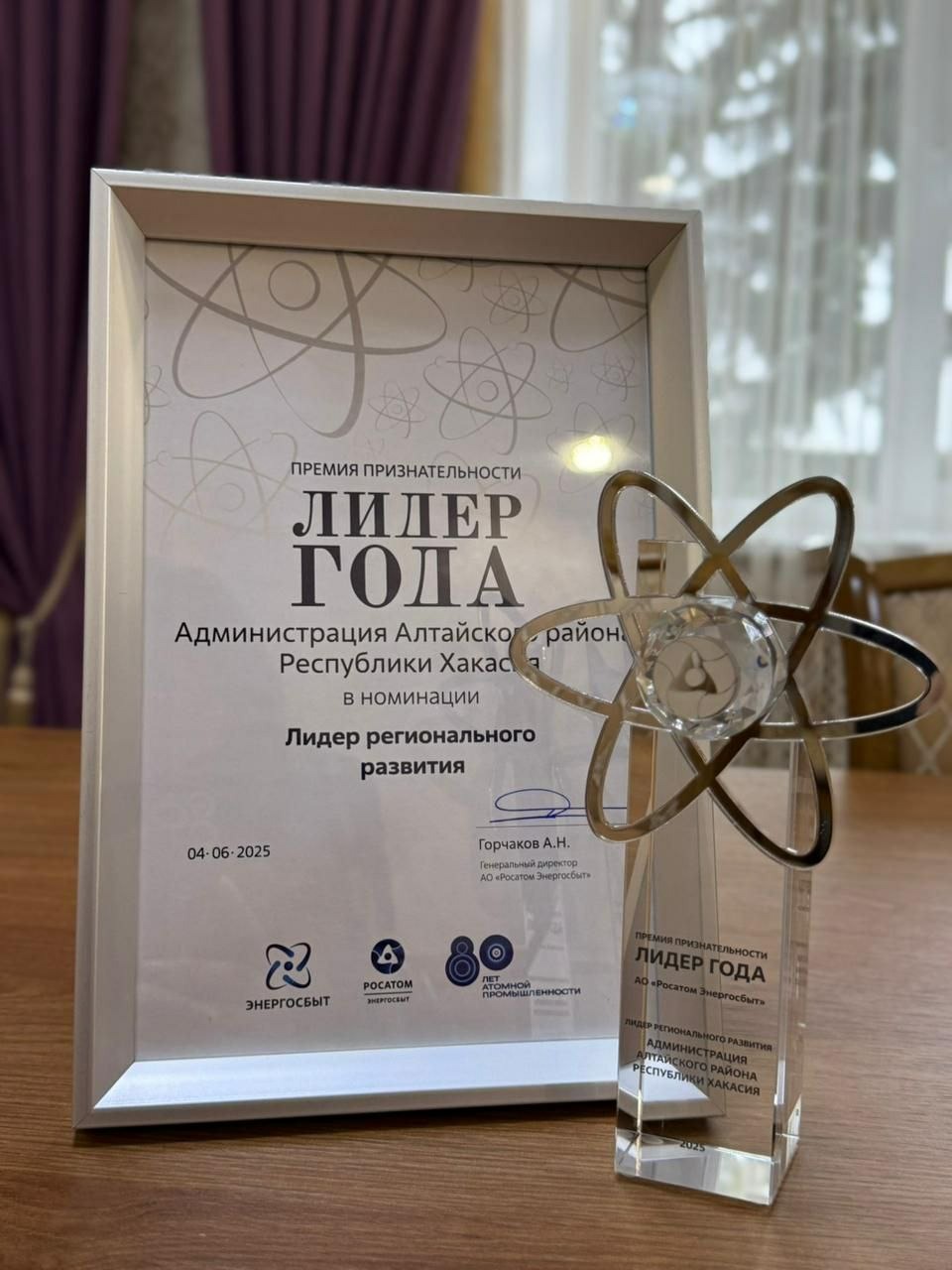 К сожалению, Ирина Войнова не смогла приехать в столицу, чтобы лично присутствовать на церемонии. Но накануне директор филиала «Росатом Энергосбыт» Хакасия Андрей Негрич передал ей награду, подтверждая её заслуги и лидерские качества Главы района.