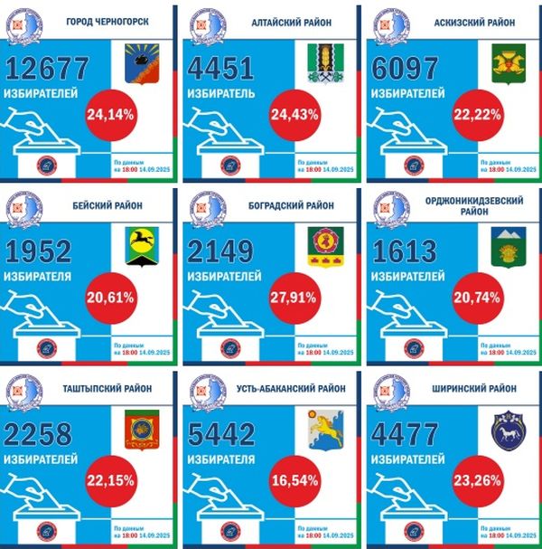 За два часа до окончания выборов в Хакасии проголосовали 22,17% избирателей