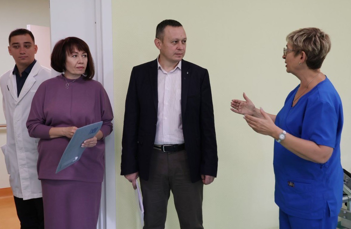 Гости ознакомились с работой 30-коечного стационара, кабинетами физической реабилитации, тренажерным залом, массажной зоной, кабинетами физиотерапии, медицинского психолога, лазеротерапии и лечебной физкультуры. В ходе осмотра были обсуждены вопросы оказания реабилитационной помощи и перспективы развития отделения.