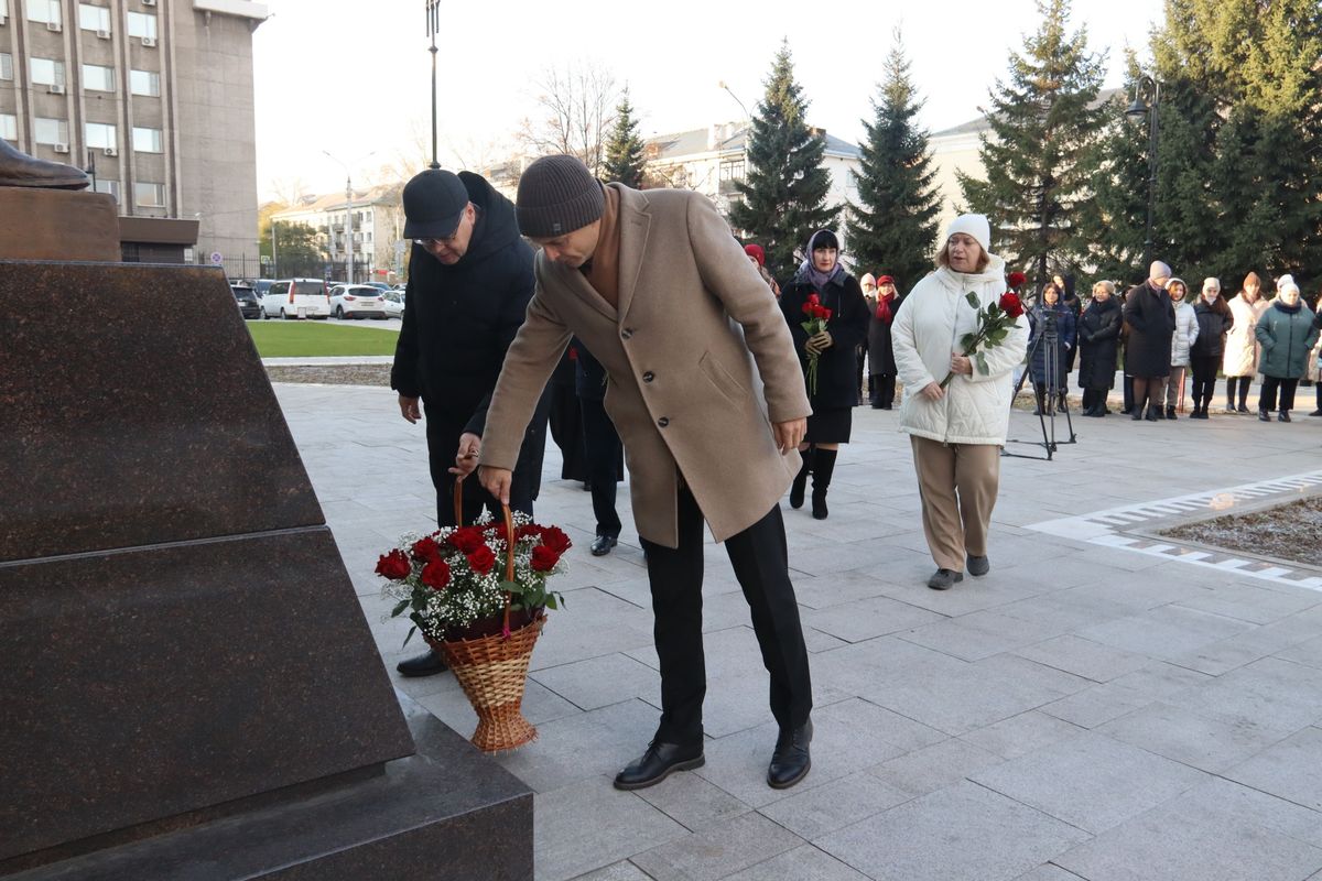 Сегодня на Театральной площади возложили цветы у памятника Народному мэру.