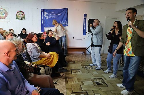 – Недавно у Союза ветеранов увеличилась площадь, которая позволяет им теперь проводить вот такие массовые квартирники, – рассказал директор по персоналу САЗа Дмитрий Коровченко. – Если раньше они проводили их в стеснённых условиях, сейчас они могут пригласить очень много гостей, местных артистов, друзей и проводить большие мероприятия. И действительно здесь классная атмосфера. Всё душевно организовано: чаепитие, молодые артисты, возрастные артисты. И такая атмосфера, которая показывает некую преемственность и единение интересов молодежи, ветеранов.